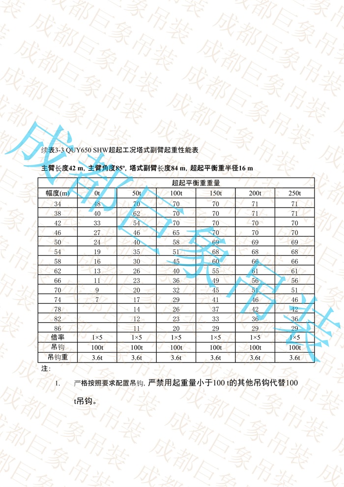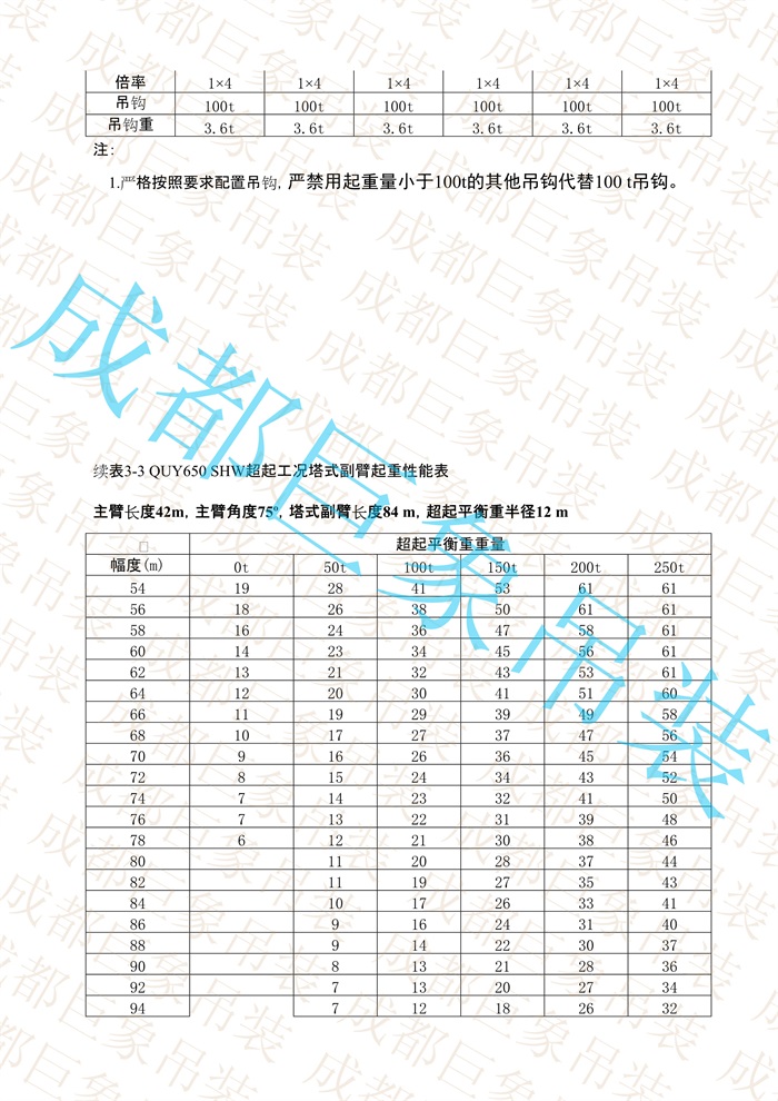 上一篇:QUY650起重性能表-超起工況塔式副臂 51-100頁