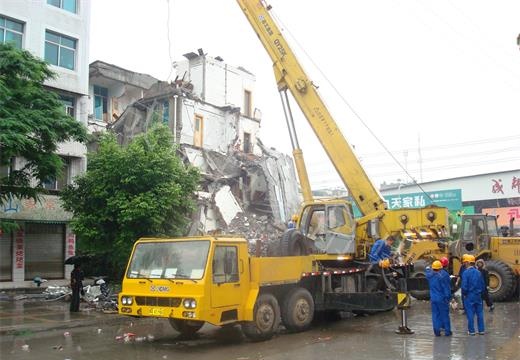 65T汽車吊在都江堰荷花池正大門旁在廢墟中成功救出幸存者